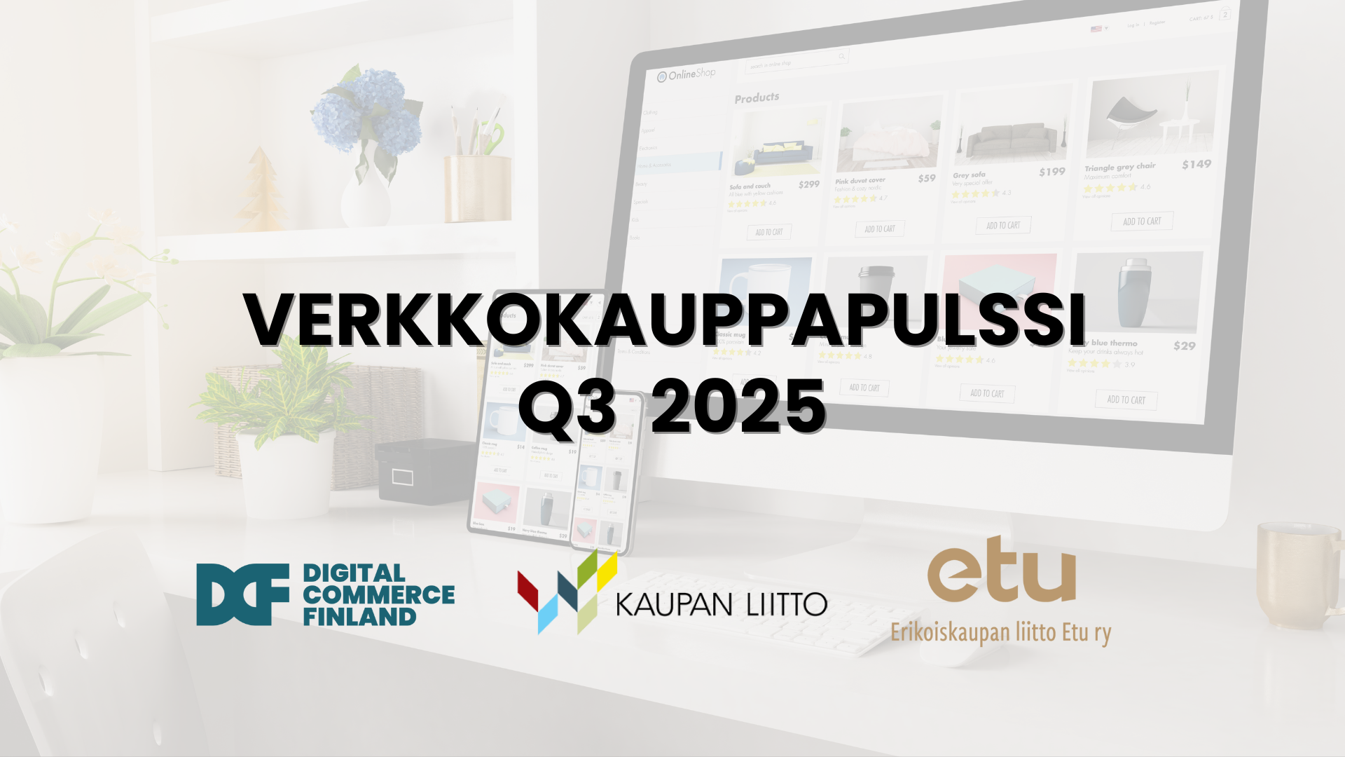 Digital Commerce Finlandin, Erikoiskaupan liitto Etun ja Kaupan liiton tuoreimman Verkkokauppa pulssin* mukaan Suomessa toimiva verkkokauppa kasvoi vuoden kolmannella neljänneksellä lähes 7 prosenttia viime vuoden vastaavaan ajankohtaan verrattuna. Samaan aikaan koko vähittäiskaupan myynti kasvoi Tilastokeskuksen mukaan 1,8 prosenttia ja erikoiskaupan myynti 0,5 prosenttia. Edelli seen vuosineljännekseen verrattuna verkkokaupan myynti pysyi ennallaan.
