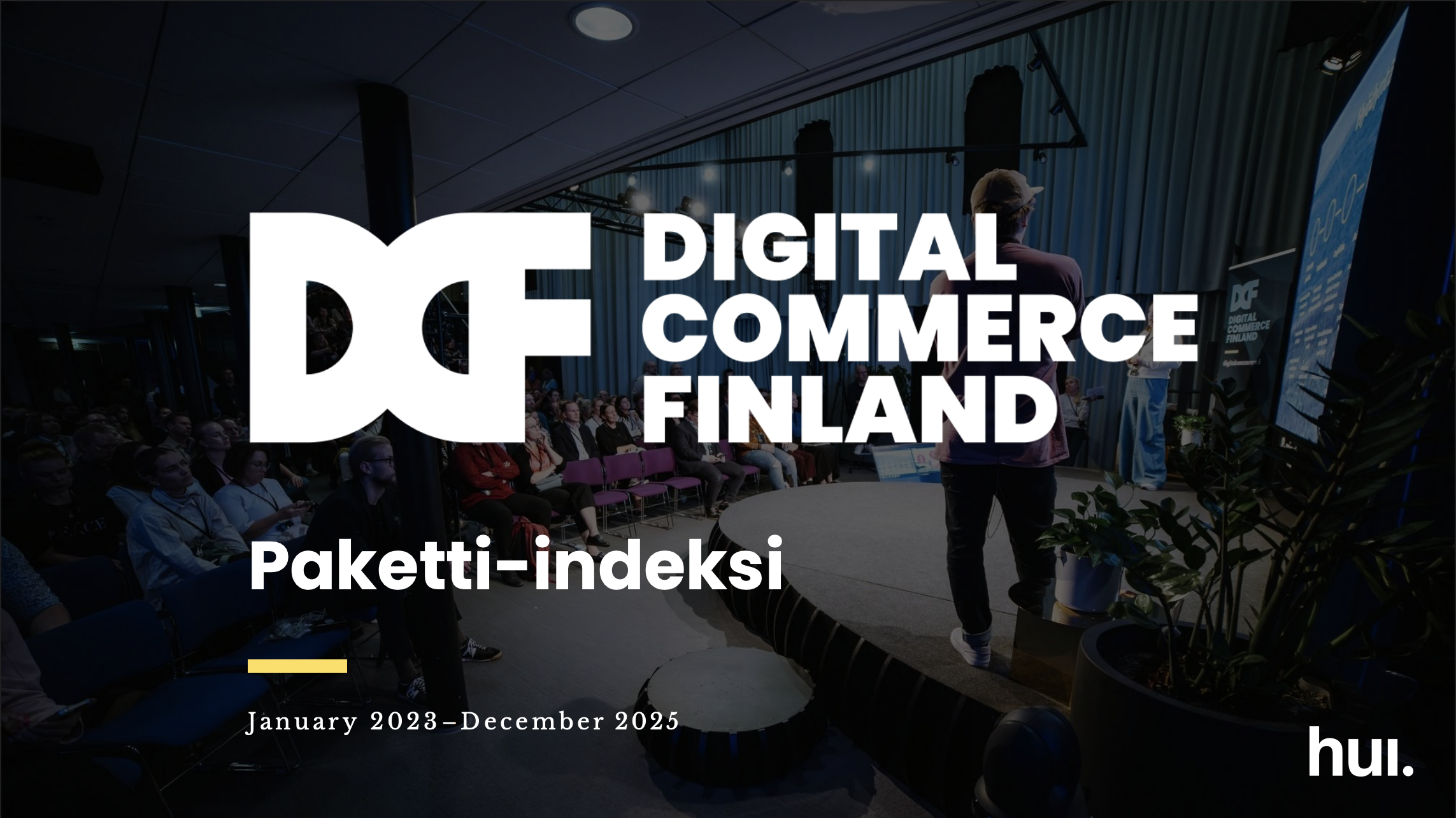 2.3.2026 Digital Commerce Finland Kaksi kertaa vuodessa julkaistavan Paketti-indeksin tavoitteena on tarjota luotettavinta tietoa Suomen verkkokaupan pakettimarkkinan volyymista ja kehityksestä.Paketti-indeksin julkaisijana toimii digitaalisen kaupan yhteisö Digital Commerce Finland ja toteuttajana HUI Research. Tutkimuksen tilaajia ovat DCF:n lisäksi suurin osa Suomessa toimivista logistiikkayrityksistä: Matkahuolto, Posti, DSV/DB Schenker, PostNord ja Budbee. Kaksi kertaa vuodessa julkaistavan Paketti-indeksin tavoitteena on tarjota luotettavinta tietoa Suomen verkkokaupan pakettimarkkinan volyymista ja kehityksestä.